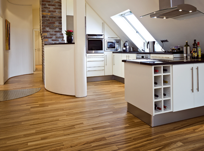 Hier zeigt sich ein Farbspiel ohne zu starke Kontraste, aber mit gelegentlichen Maserungseinläufen. Ein breiter Wandfries kann die Flächenwirkung verstärken. Dieser Boden liebt dunklere Möbel und Einrichtungen ohne zu starke Farbkontraste.
